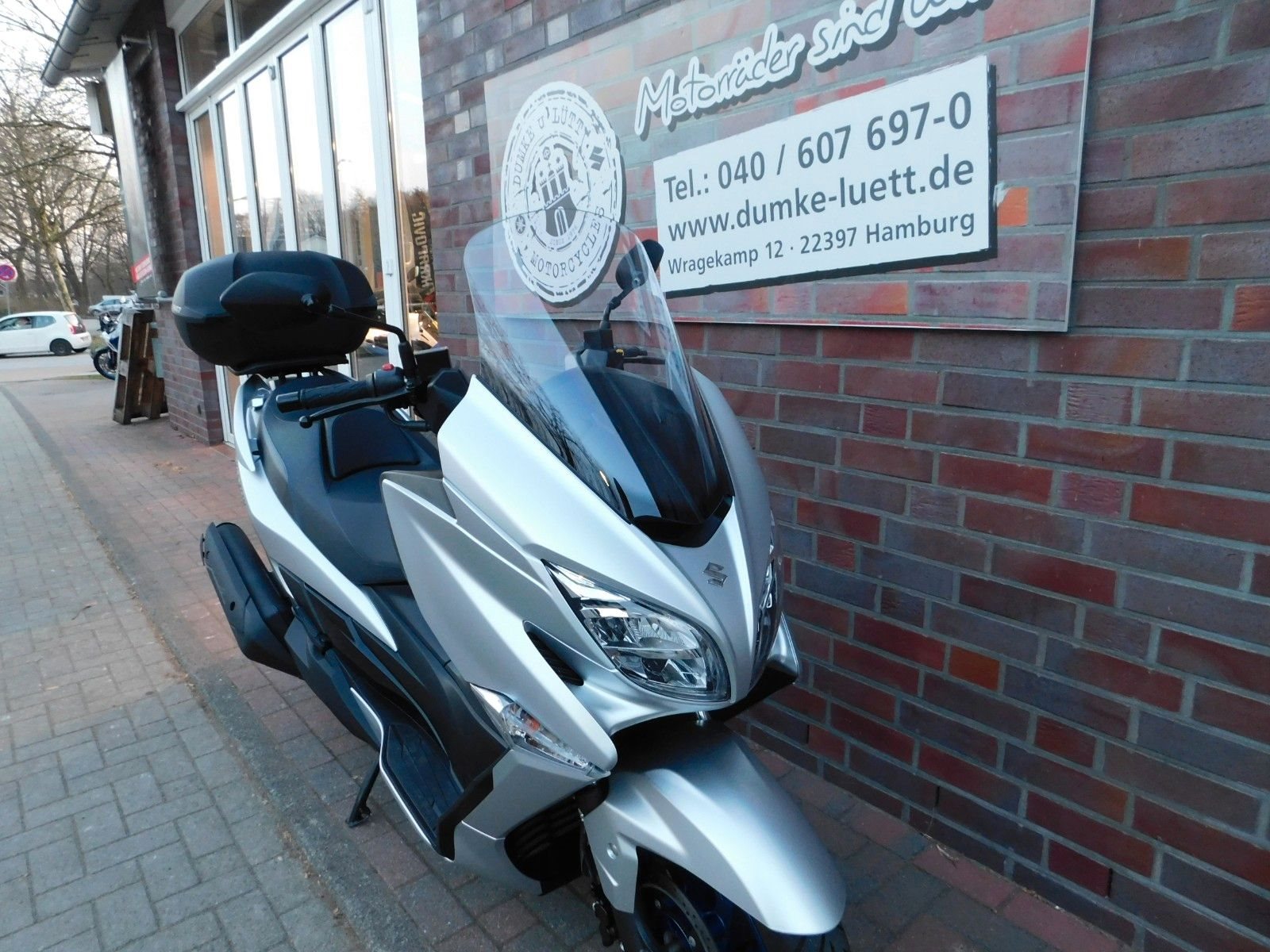 Moin! Wir sind Dumke u. Lütt, Euer offizieller Hamburger Vertragshändler für Suzuki & Yamaha. Seit über 45 Jahren (seit 1976) sind wir auf den Straßen Hamburgs zu Hause. Wir teilen gerne unsere Lebensfreude und Begeisterung für Motorräder und Roller mit Euch. Daher laden wir Euch in unsere rund 1.000 qm große Welt bei uns in Hamburg (Duvenstedt) ein. Von Montag bis Samstag stehen Euch unsere Türen offen. Mehr über uns und die Community findet Ihr unter www.dumke-luett.de. Ihr wollt mit uns schnacken? Dann ruft an unter 040/607697-0 oder schreibt eine E-mail an info@dumke-luett.de